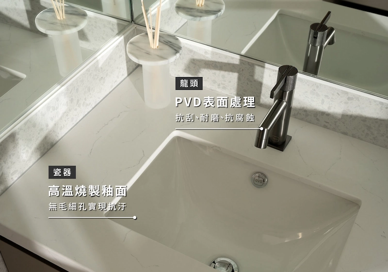 高溫燒製抗污釉面+PVD技術 OVO讓浴室永保光澤